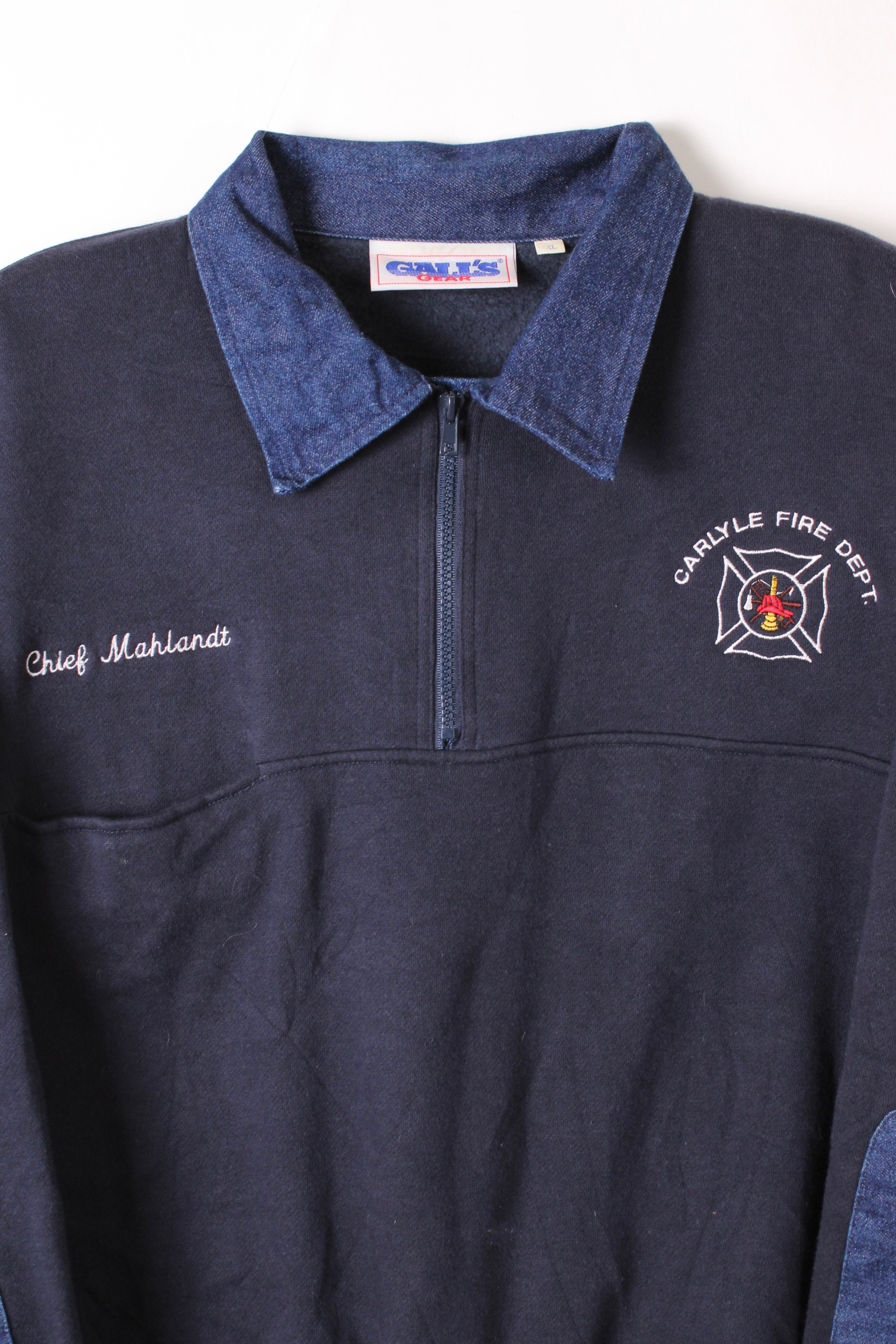 US FIREMAN VINTAGE QUARTER ZIP SWEATSHIRT BLUE - XL