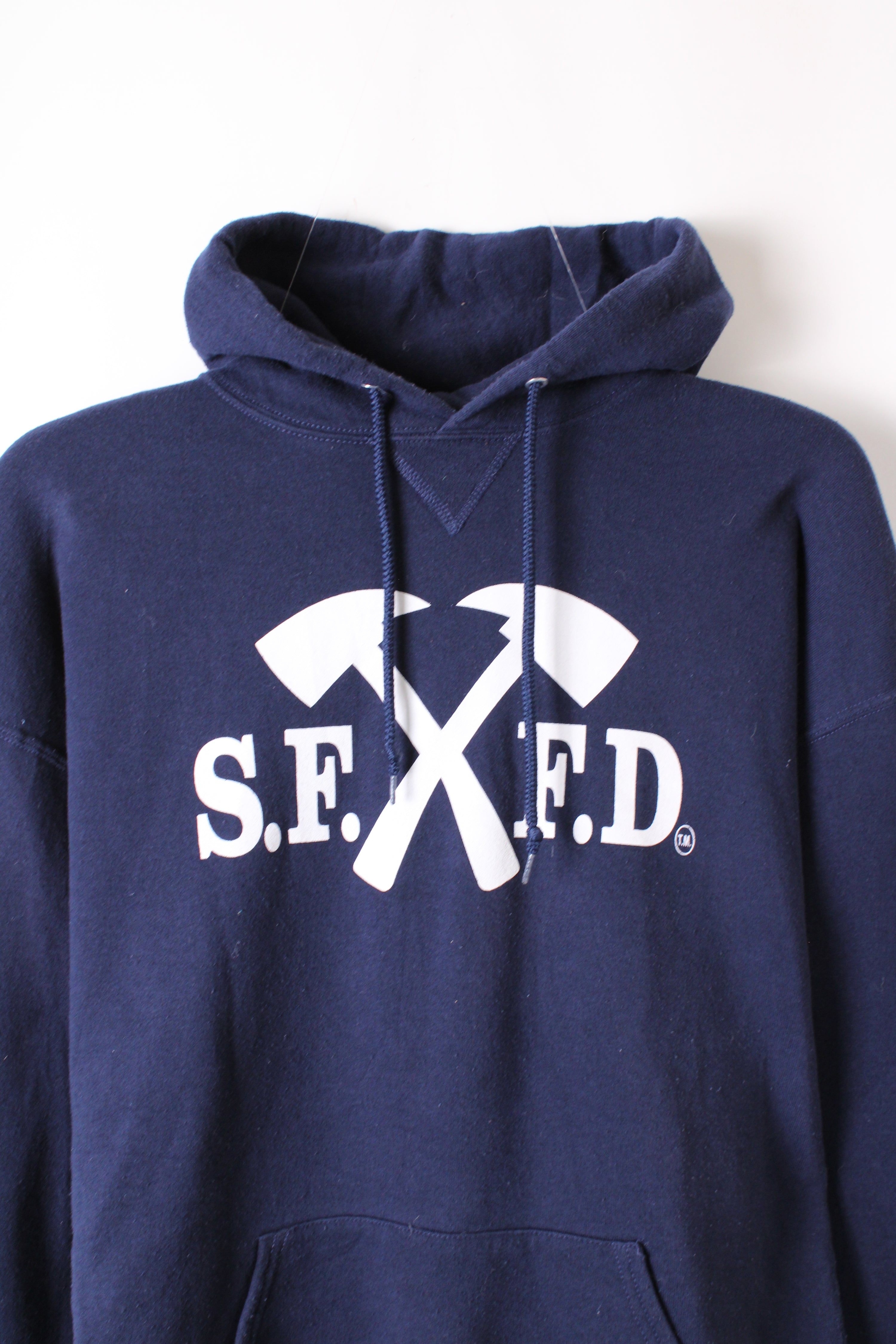 RUSSELL ATHLETIC VINTAGE HOODIE BLUE SFFD FIREMAN - XXL