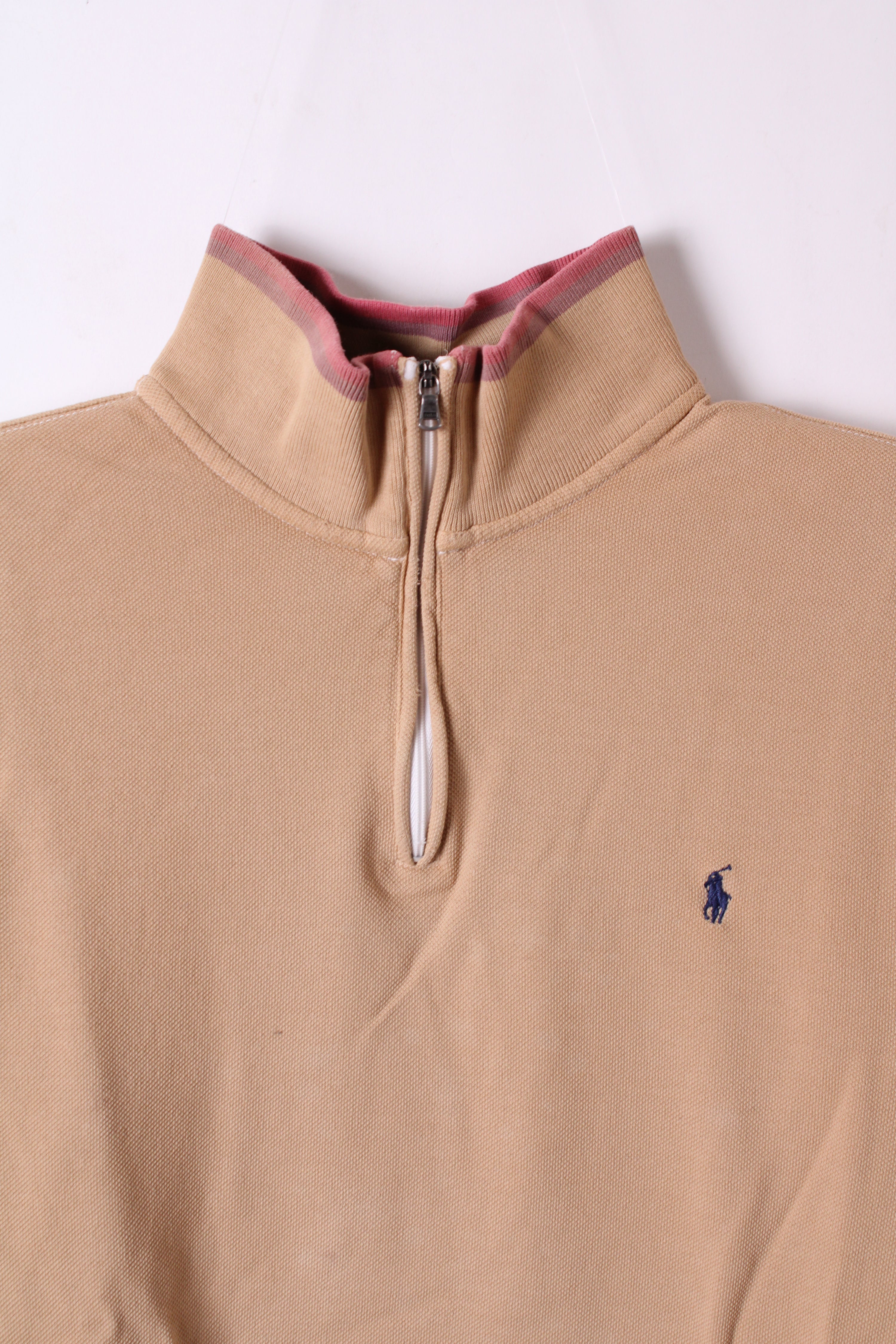 RALPH LAUREN QUARTER ZIP SWEATER BEIGE - XL