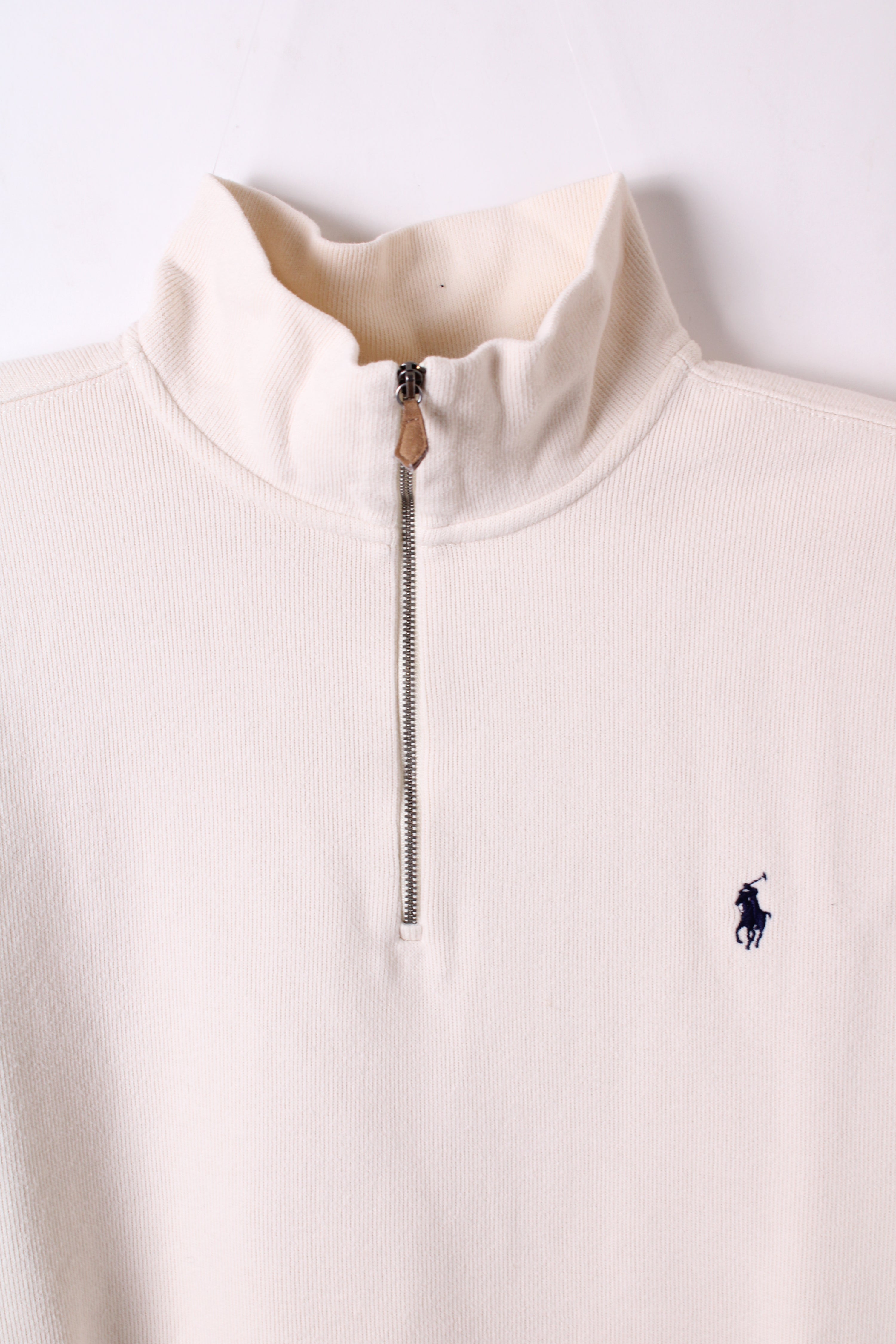 RALPH LAUREN QUARTER ZIP SWEATER CREAM WHITE - XXL