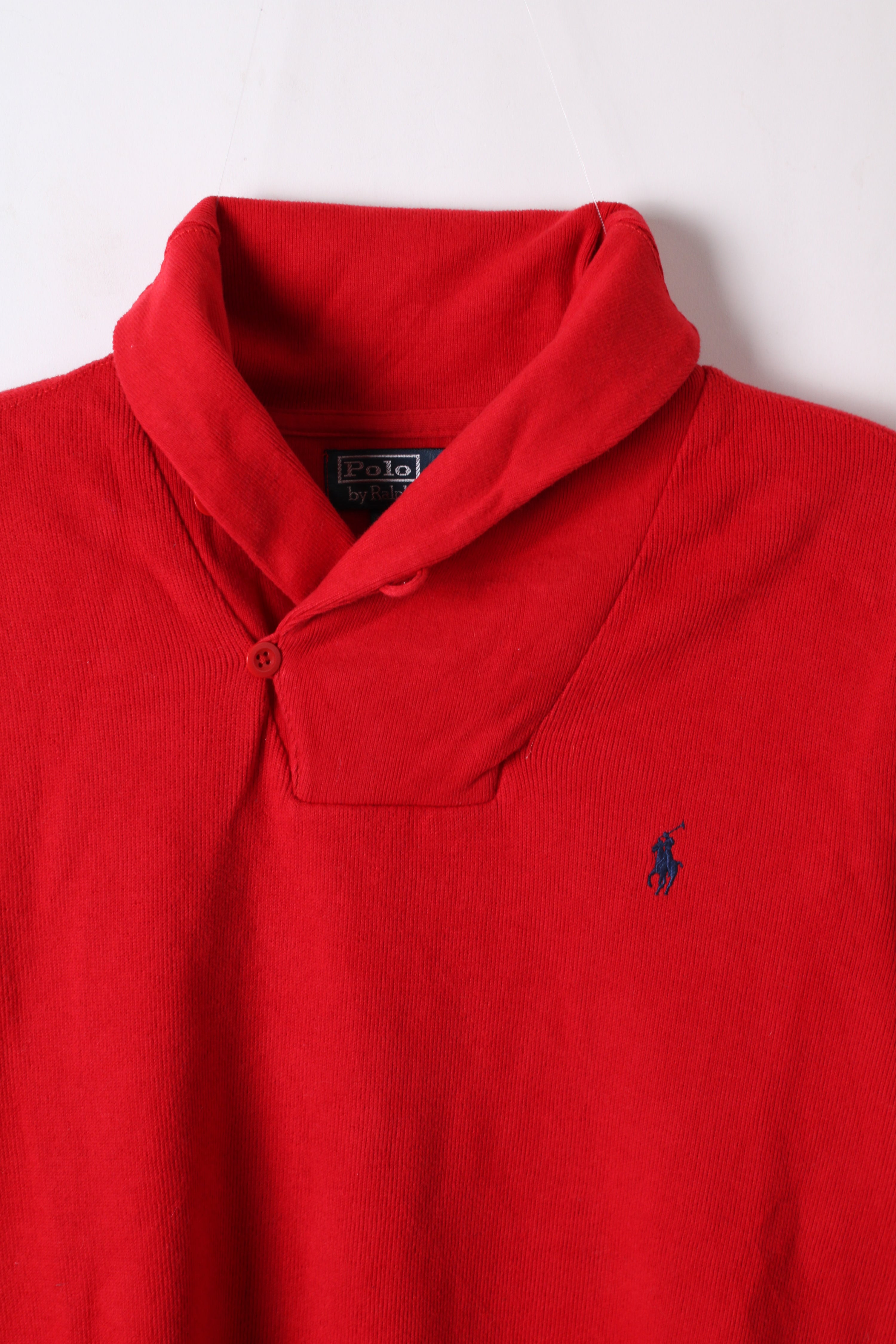RALPH LAUREN COTTON SWEATER SHAWL COLLAR RED - L