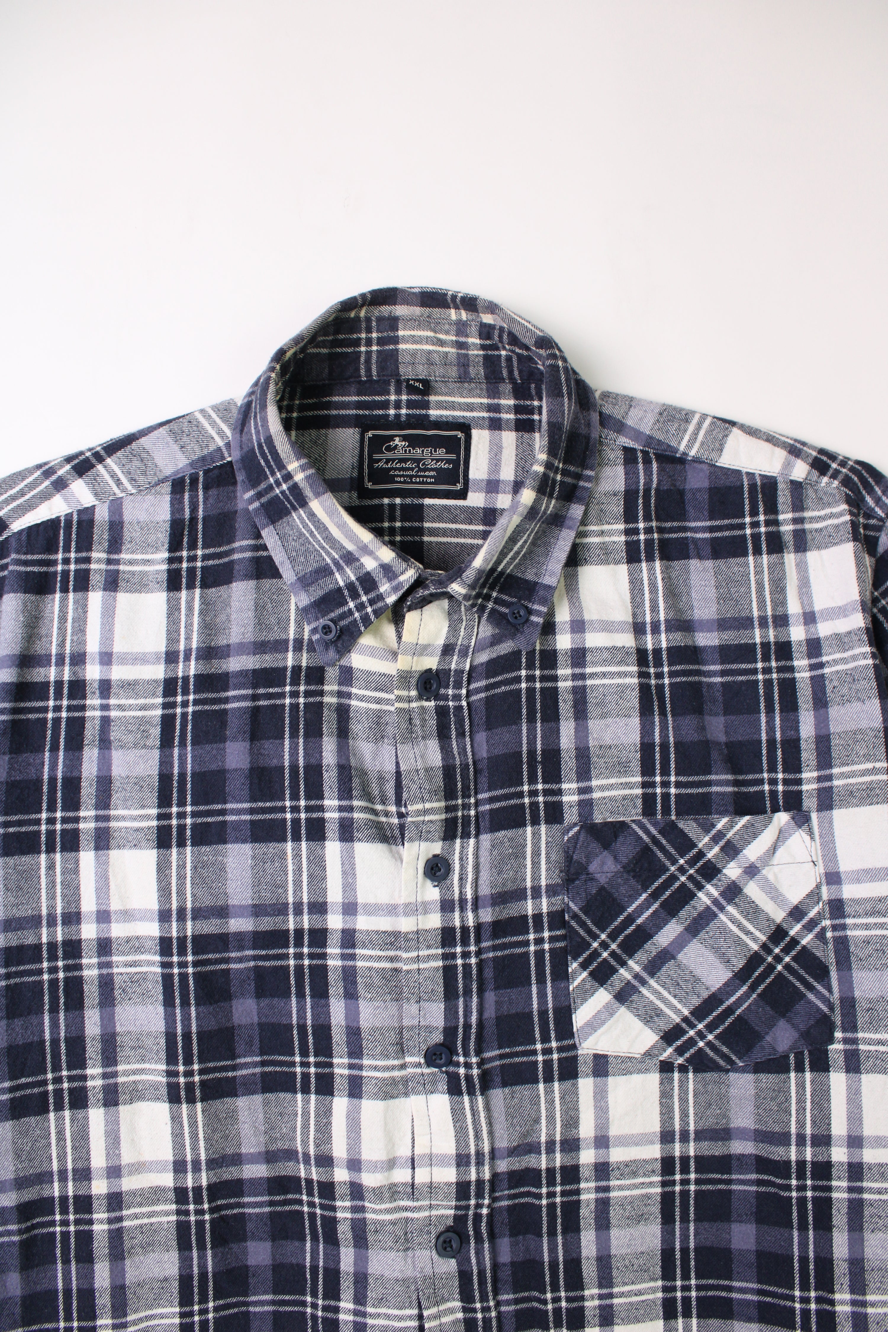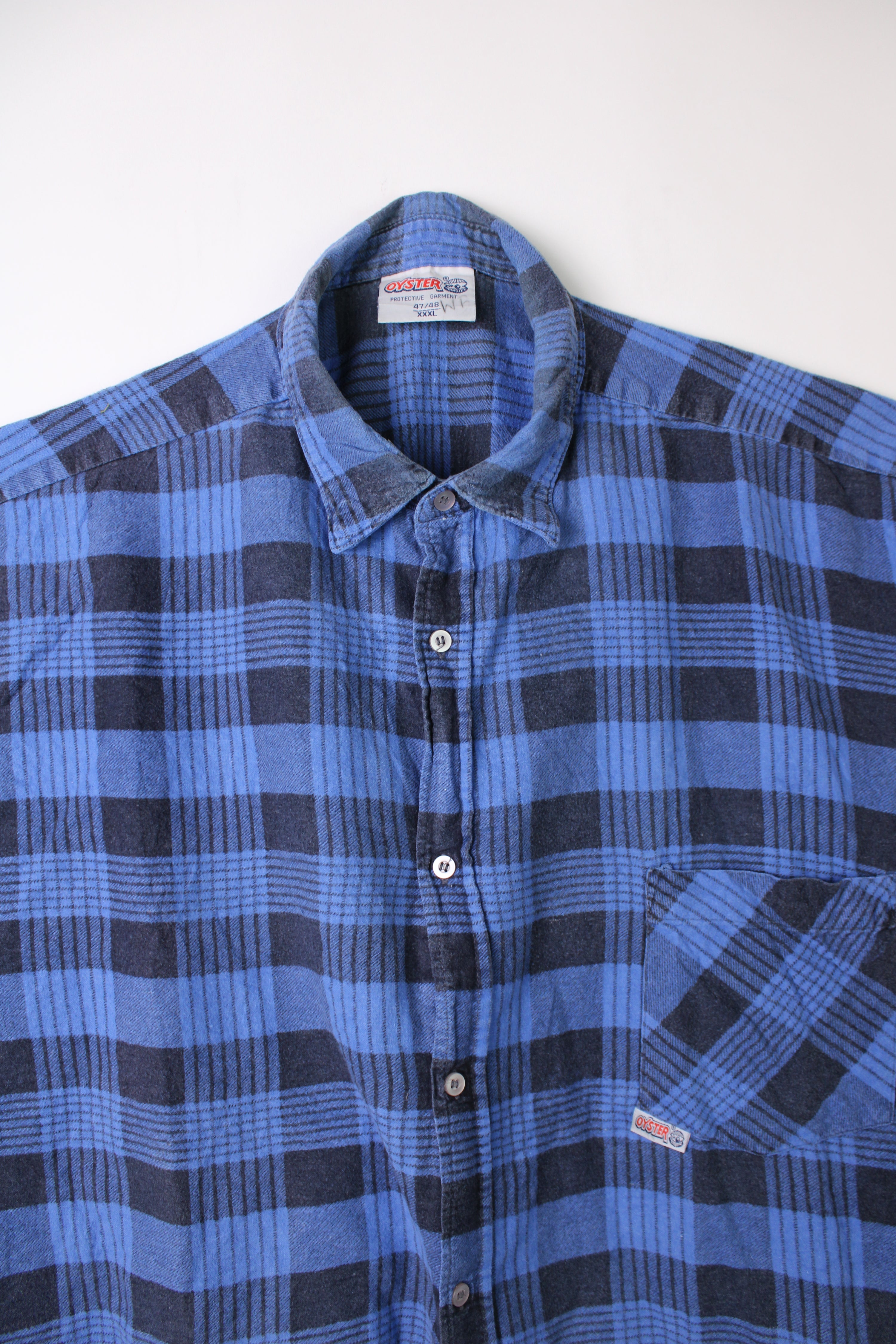 VINTAGE FLANNEL TARTAN PLAID SHIRT BLUE CHECK - XXXL