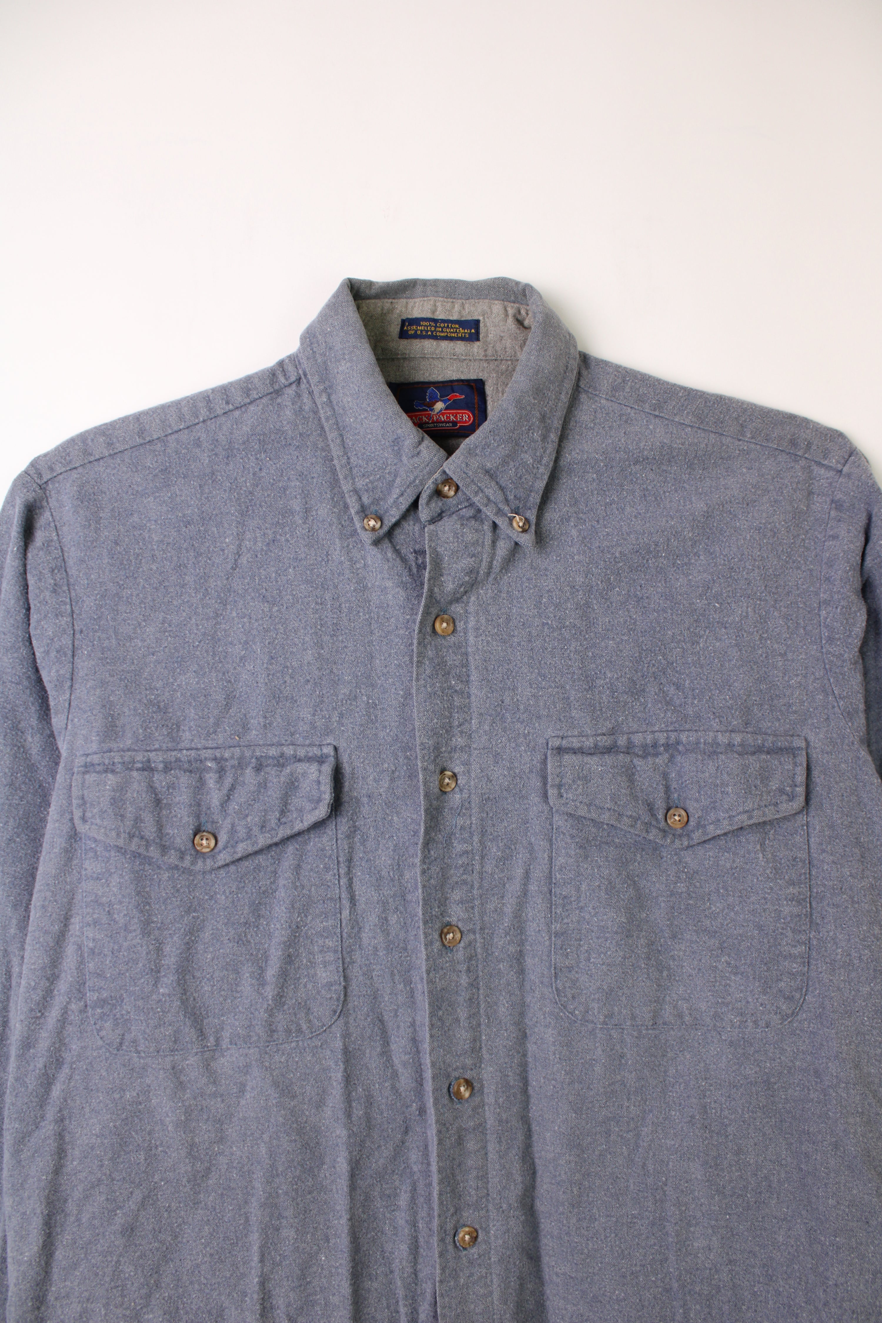 VINTAGE FLANNEL PLAID SHIRT PETROL BLUE - L