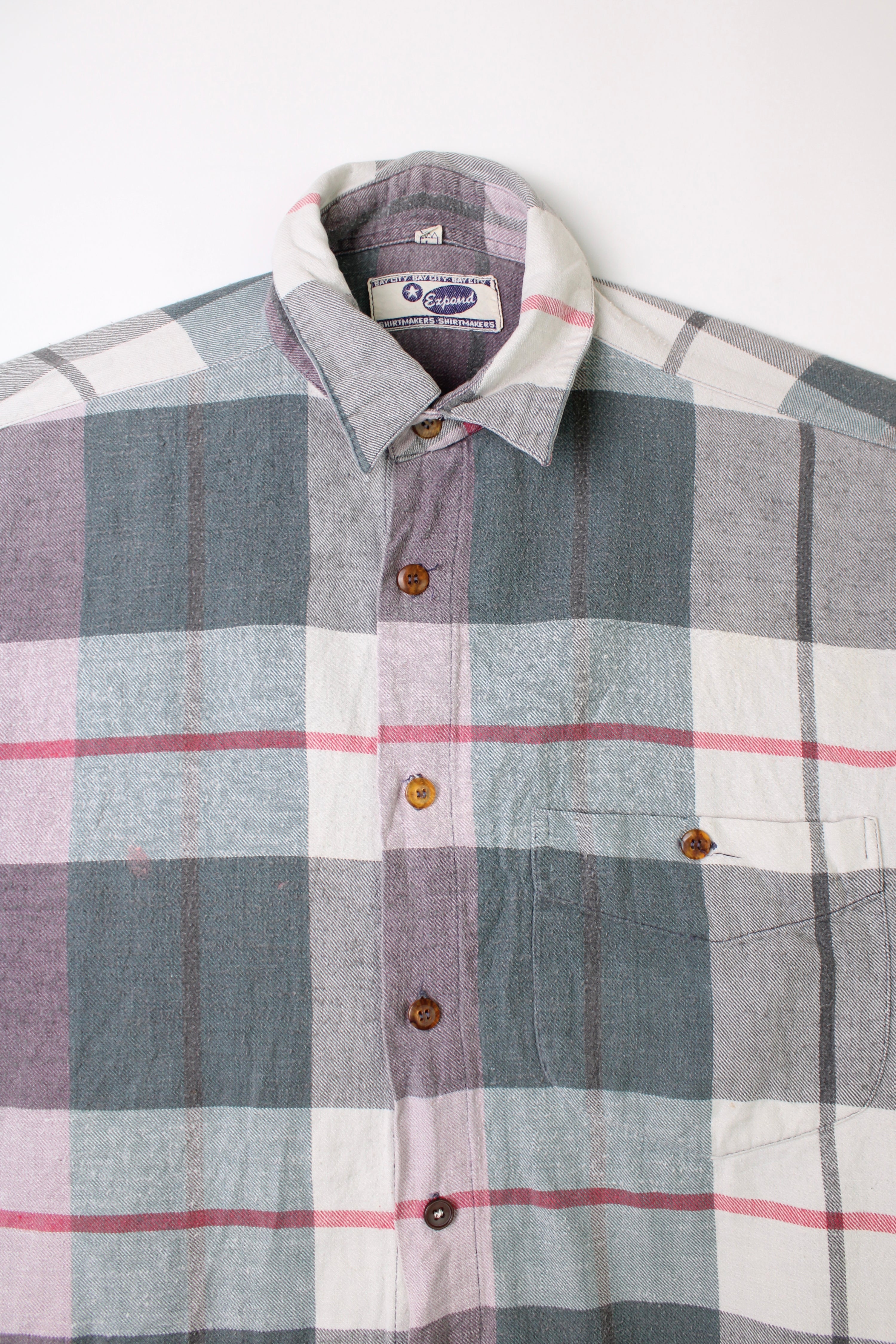 EDDIE BAUER VINTAGE FLANNEL PLAID SHIRT GREY - XL