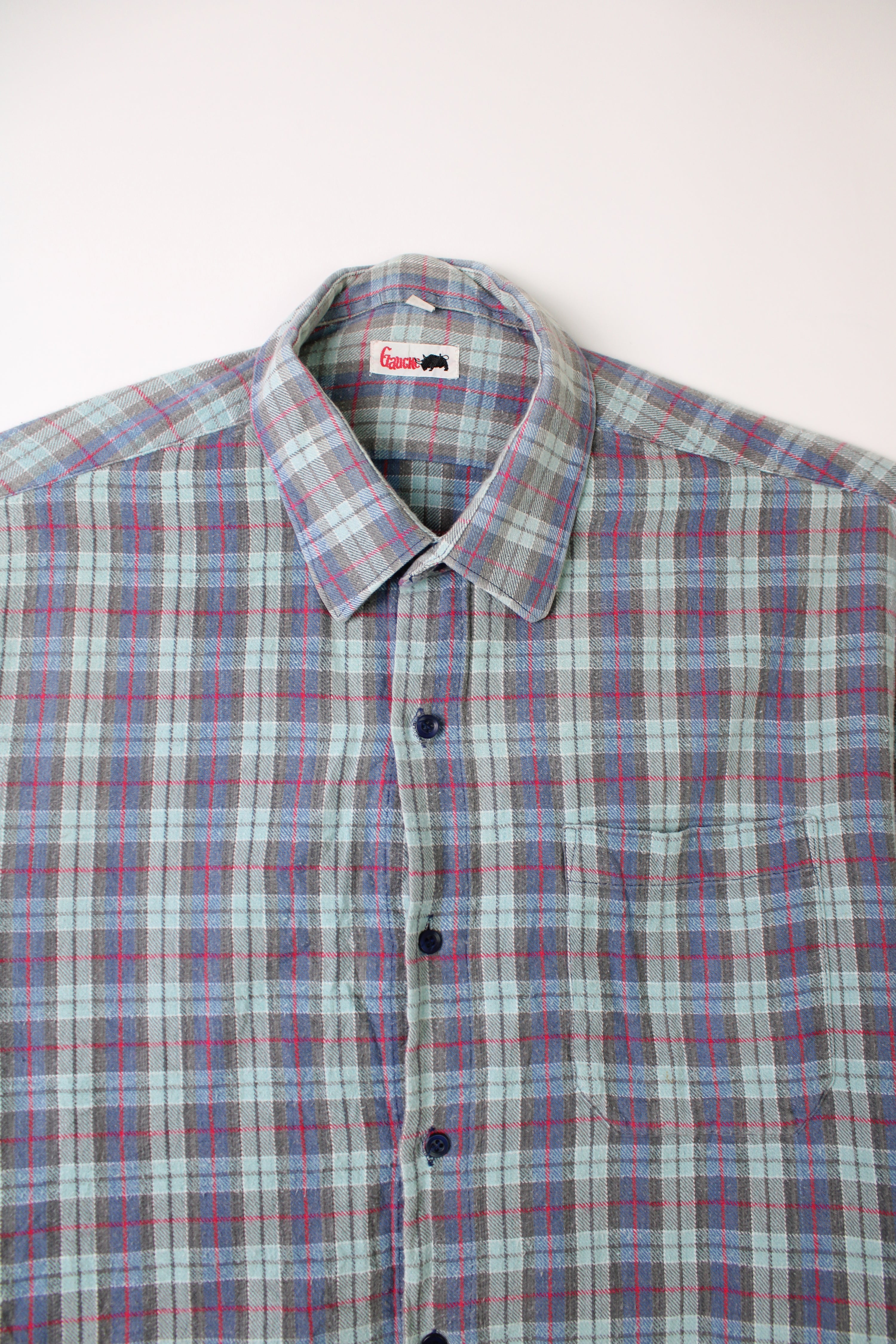 VINTAGE FLANNEL PLAID SHIRT LIGHT BLUE - M