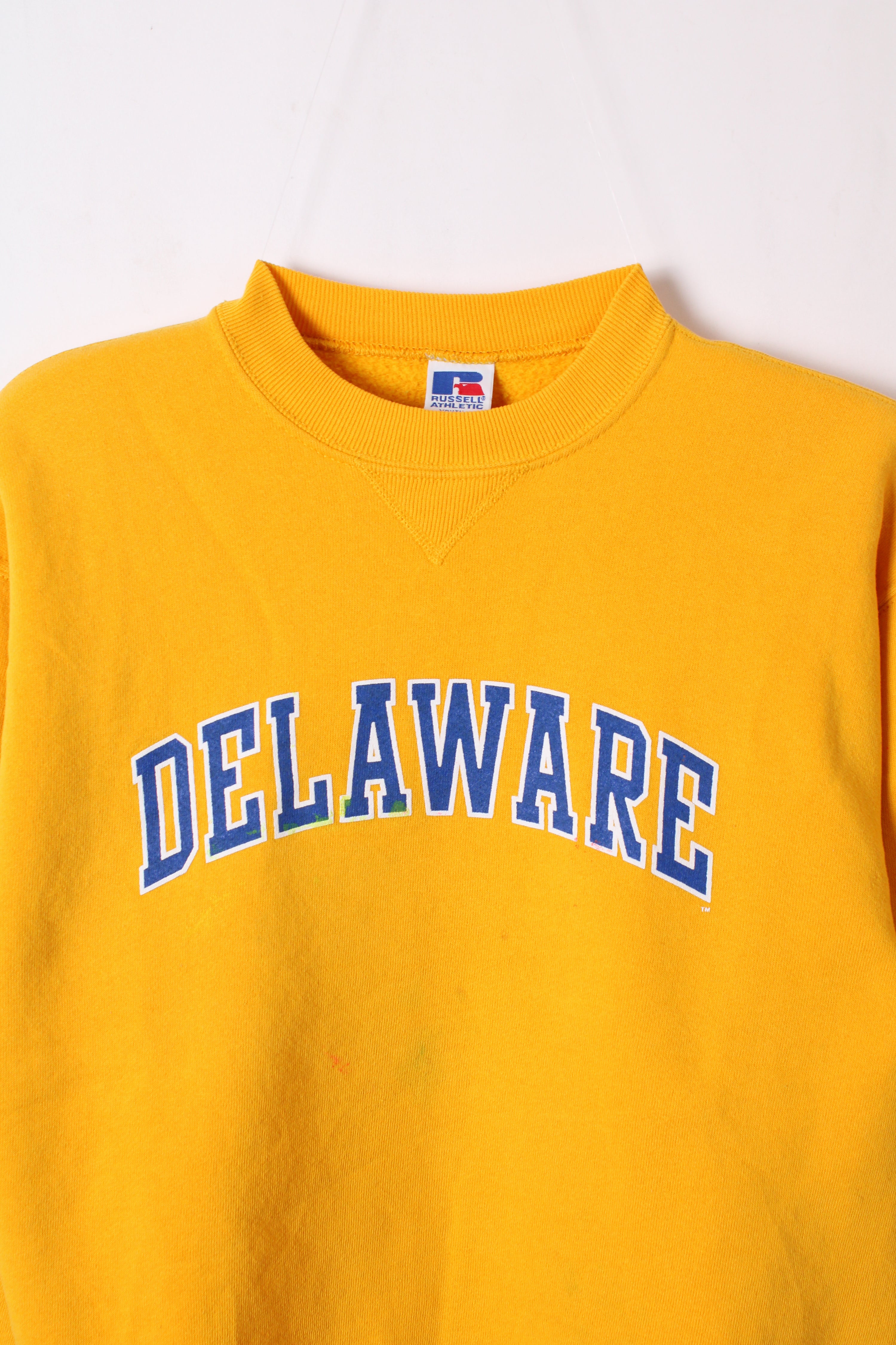RUSSELL ATHLETIC VINTAGE CREWNECK YELLOW DELAWARE - XS/S